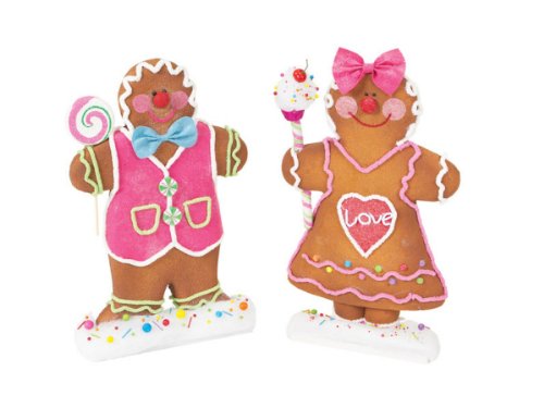 Add a whimsical touch to your home decor with with these gingerbread boy and girl couple holding lollipops